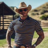 Men's Western Cowboy Striped Polo Collar Short Sleeve T-shirt