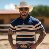 Men's Western Cowboy Striped Polo Collar Short Sleeve T-shirt